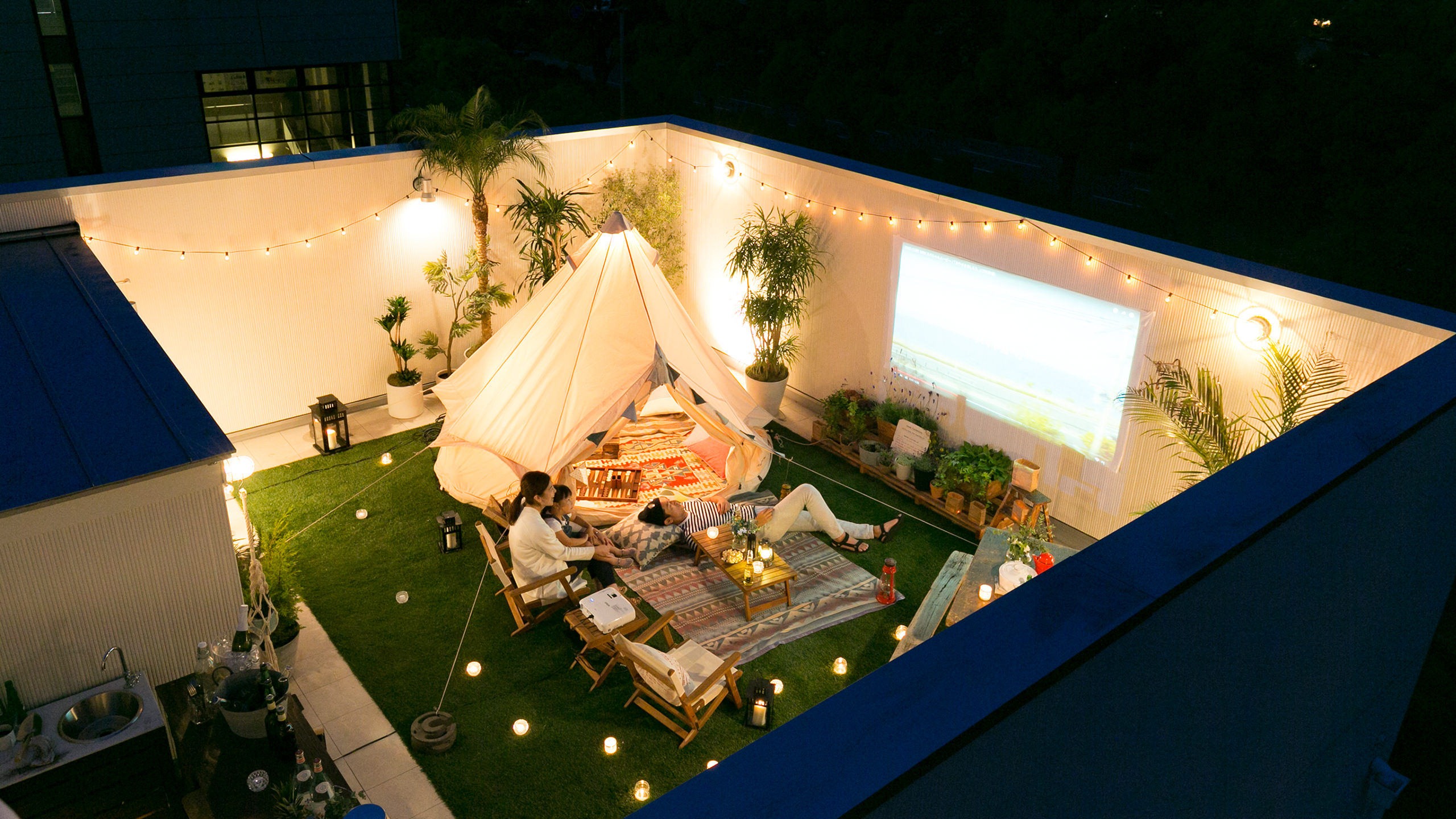 屋上バルコニーでお家キャンプをしてみたり。